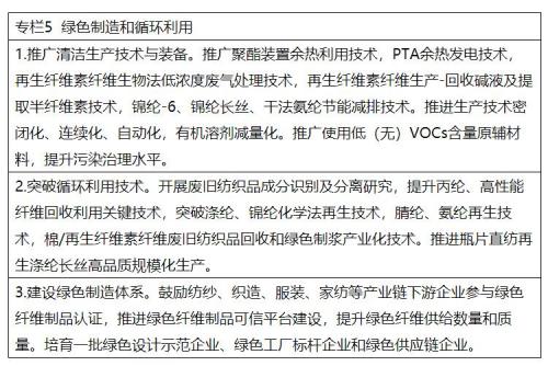 (二)提高循环利用水平。实现化学法再生涤纶规模化、低成本生产,推进再生锦纶、再生丙纶、再生氨纶、再生腈纶、再生粘胶纤维、再生高性能纤维等品种的关键技术研发和产业化。推动废旧纺织品高值化利用的关键技术突破和产业化发展,加大对废旧军服、校服、警服、工装等制服的回收利用力度,鼓励相关生产企业建立回收利用体系。