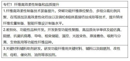 (一)强化政策支持引导。准确定位化纤工业鼓励和限制领域,加大对高性能纤维、生物基化学纤维、再生化学纤维及可降解纤维材料等领域支持力度。鼓励科研院所、高校、企业联合申报国家专项,加快技术研发和成果转化,支持企业建设国家级重点实验室等创新平台。