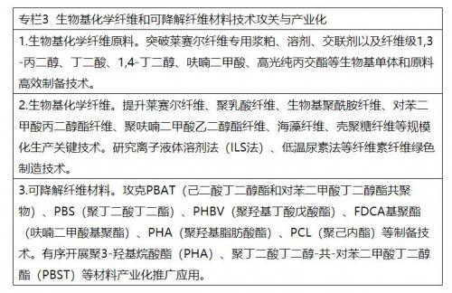 (三)加快生物基化学纤维和可降解纤维材料发展。提升生物基化学纤维单体及原料纯度,加快稳定、高效、低能耗成套技术与装备集成,实现规模化、低成本生产。支持可降解脂肪族聚酯纤维等可降解纤维材料关键技术装备攻关,突破原料制备和高效聚合反应技术瓶颈,加强纤维可降解性能评价,引导下游应用。