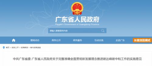 原标题:中共广东省委广东省人民政府关于完整准确全面贯彻新发展理念推进碳达峰碳中和工作的实施意见
