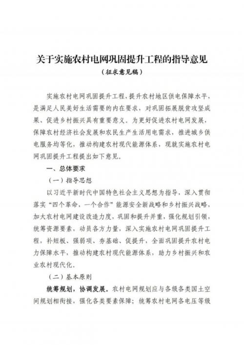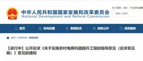 公开征求《关于实施农村电网巩固提升工程的指导意见(征求意见稿)》意见的通知