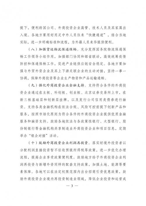 促进外资扩增量稳存量提质量的若干政策措施》的通知
