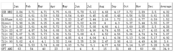 表3河北保定的日辐射情况(北纬38.52 ,东经115.27)