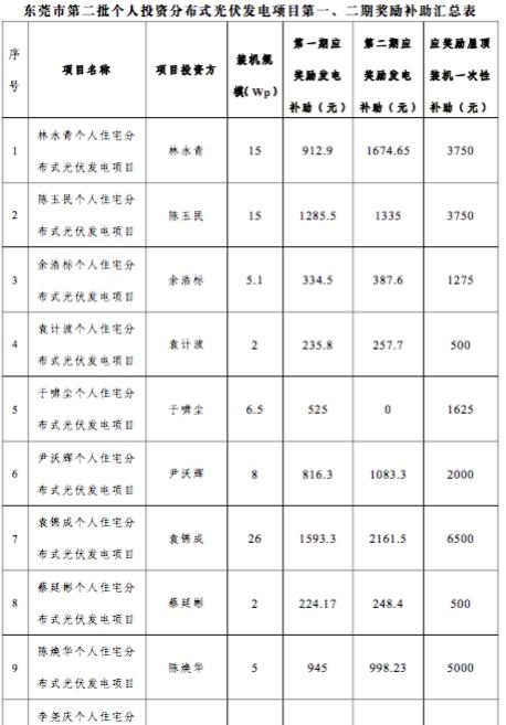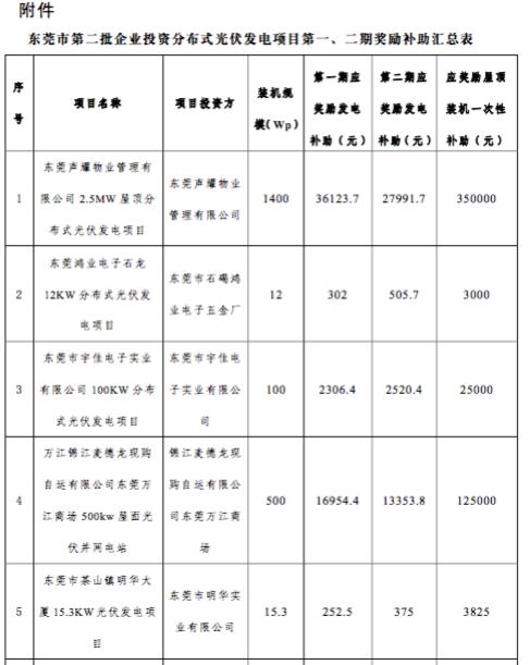 附件:东莞市第二批(第一、二期)专项补贴分布式光伏发电项目汇总表.pdf