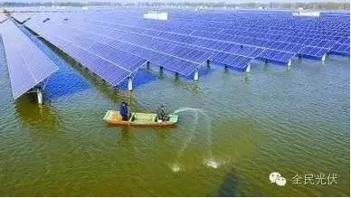 水上架设太阳能光伏电板,水下养殖鱼虾水产品,通过在鱼塘上方安装太阳能发电板,这种“上可发电、下可养鱼”模式,不仅提高了水面资源利用效率,使同一块土地的产出倍增。光伏阵列还可以为养鱼提供良好的遮挡作用,社会效益、经济效益和环境效益多赢的局面。