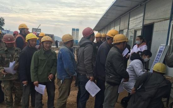 参加体检的农民工兄弟