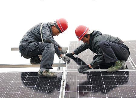 1月4日,泾川县30兆瓦农业光伏并网发电项目建设基地,工人们安装单晶硅光伏组件。该项目是泾川县招商引资建设的新能源项目,具有显著的节能环保效益,全面建成后,年均上网电量可达到5400万度,对补充电网末端电力供应,满足全县分散负荷用电需要具有积极的带动作用。