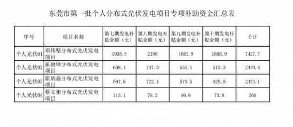 4.东莞市第四批个人分布式光伏发电项目专项补助资金汇总表