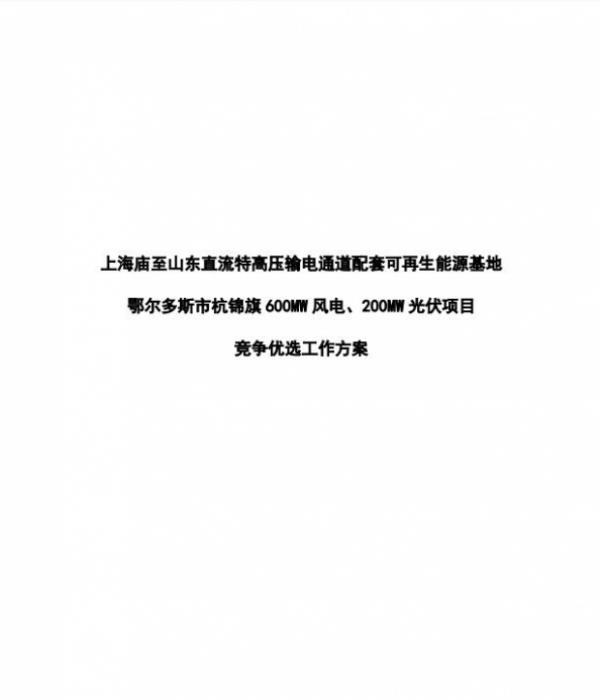 附件:上海庙至山东直流特高压输电通道配套可再生能源基地鄂尔多斯市杭锦旗600MW风电、200MW光伏项目竞争优选工作方案