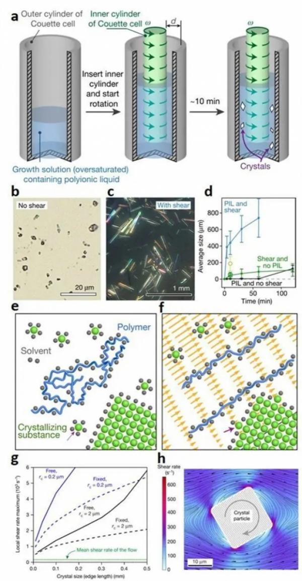 该项研究突破了人们对传统晶体生长机理的认知,发现在聚离子液体(PIL,一类聚电解质材料)存在的环境中,不断的搅拌会让晶体生长的更快、更大。