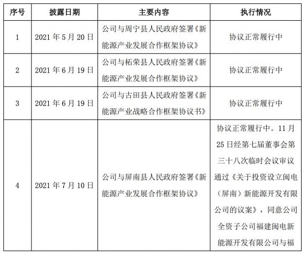 与此同时,寿宁县政府同意公司在其管辖区域内开展分布式光伏发电项目的开发,包括国有资源(公用的学校、医院办公基地,产业园区,公路,厂矿企业、工业厂房、农业生产基地、旅游区域、非饮用水源的河湖水库等区域)配置开展分布式光伏项目投资建设;以及在其所属的园区、工厂、建筑屋面等区域开展分布式光伏项目的投资建设。