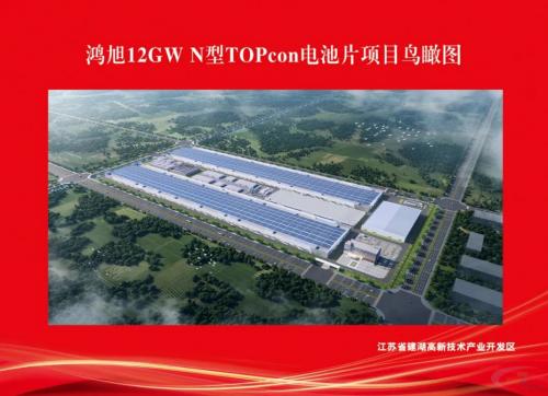 鸿旭12GW N型TOPCon光伏电池片项目,计划总投资50亿元,投产达效后年可实现销售100亿元以上,税收3.75亿元以上。