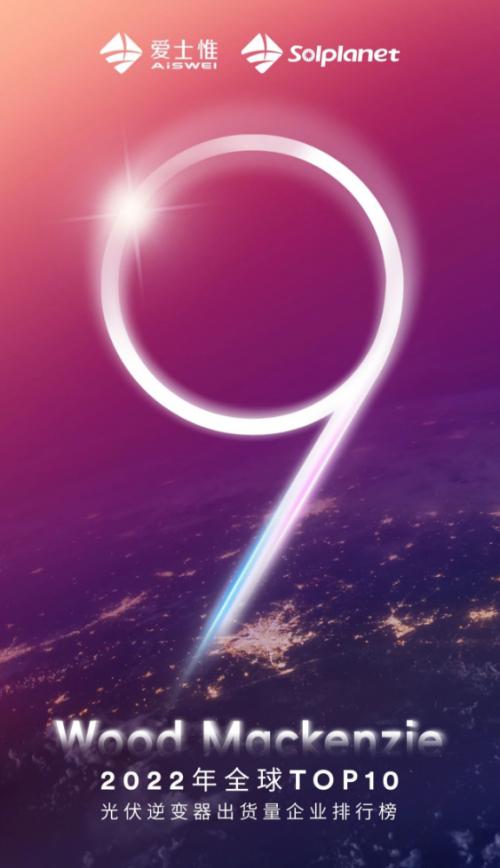 爱士惟荣列2022年全球TOP10光伏逆变器出货量企业排行榜NO.9