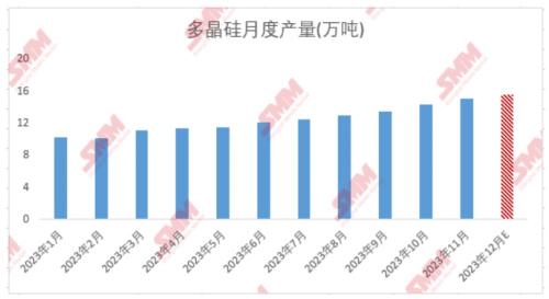 据统计,近期部分多晶硅企业确实出现不同程度检修及减产现象,但数量不多且多为小厂,整体对12月份供应影响有限——SMM预计12月末多晶硅实际产量预计较月初计划排产减产1200吨左右。