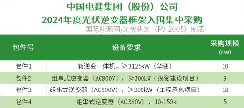 华能集团也于12月发布了中国华能集团有限公司2024年逆变器框架协议采购招标,项目采购容量高度10GW。其中集中式逆变器采购1GW,300KW及以上逆变器采购9GW。与2023年采购容量6GW相比,采购规模同样大幅提升。此外,本次集采不再设置300KW以下组串式逆变器标段,也是一大特点。