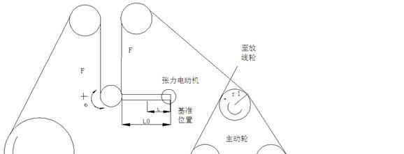 F为切割线张力;为轴承摩擦作用力;g为重力加速度;张力摆杆长为L0;角速度为ω;质量为m’;张力摆杆与电动机转子的等效转动惯量为I;摆杆重心距张力电动机轴心距离为L;张力电动机施加的转矩为M。