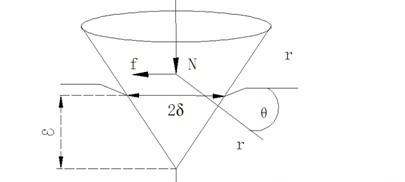 式中:σs为屈服点(MPa);A为接触面积(mm2);p为接触压力(MPa);L为相对移动距离(mm);α为顶角(°)。