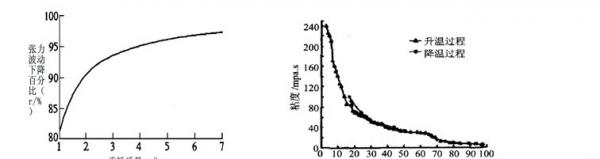线切割用切削液具有重要作用,兼具切削、粘滞、冷却三大功能,可以有效提高硅片质量和生产效率。因切削液功能受粘度影响,而温度又直接影响其粘度,因此,通过控制温度来控制切削液的粘度,而且要适宜[8]。因切削液状态变化需要时间,所以其升和降温曲线呈非线性。0-25℃时,粘度随温度降低迅速增大;25℃-100℃时,粘度随温度升高的变化缓慢,见图5。