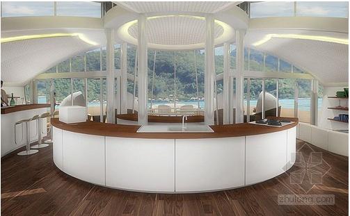 太阳能漂浮岛建有度假胜地所需具备的一切设施,包括游泳池、可观赏奇异海洋动物的客房、码头以及停机坪,让游客度过一个完美假期。