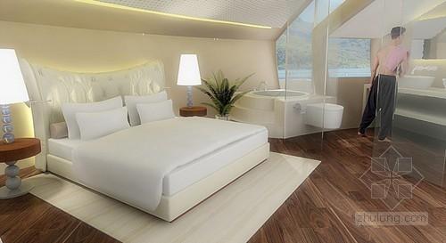 太阳能漂浮岛的卧室备有极可意风格浴缸,舒适的大床,游客可尽情领略美丽的海洋景色。