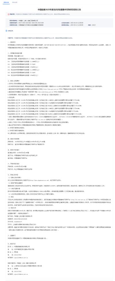 光伏头条(微信号:PV-2005)获悉,6月3日,中国能建2025年度光伏逆变器集中采购项目招标公告发布。