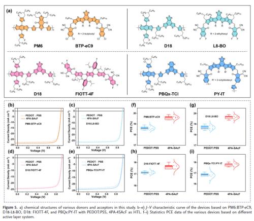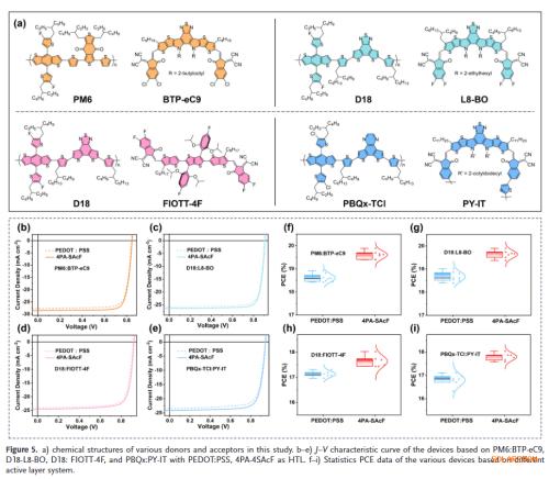 效率突破与普适性:在PM6:Y6体系中实现19.52%的高效率,并在多种非富勒烯体系中普遍适用,最高效率达20.37%,展现出优异的材料通用性。