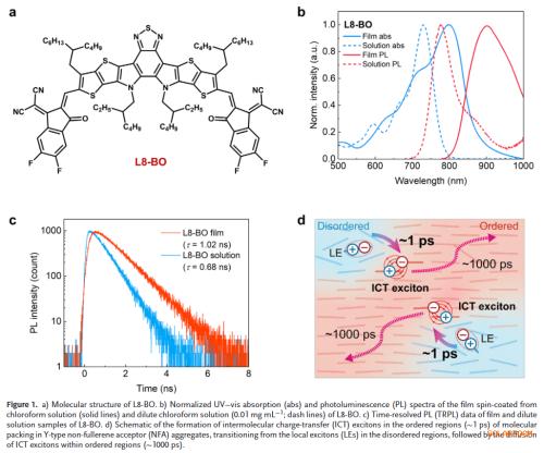 激子扩散长度(LD)是有机太阳能电池(OSCs)的关键参数。目前性能最优异的OSCs基于Y型非富勒烯受体材料(包括Y6及其衍生物)。近期研究表明,Y型NFA中会产生分子间电荷转移激子,但ICT激子形成对LD的影响尚未明确讨论。