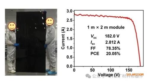 该“基质限域分子层”策略对之前报道的多种SAM型空穴传输分子都适用,体现了优异的技术适用性,利用已有空穴传输分子即能实现有效的传输层及界面调控,减少了对复杂分子设计与合成的依赖性。该策略成功应用于1 m× 2 m大面积模组,成功获得了当前世界纪录的20.05%第三方认证效率。此项工作解决了制约大面积钙钛矿光伏模组发展的重大难题,为电荷传输层及界面设计提供了新思路。