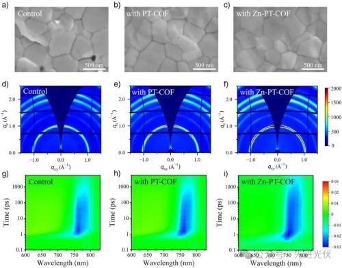 提升电荷传输与润湿性:COFs具有刚性的卟啉核心,增强了电荷传输能力,同时其灵活的亲水性侧链改善了基底的润湿性。这样的组合不仅提升了电荷提取效率,还促进了钙钛矿薄膜的结晶,减少了埋藏界面上的缺陷。