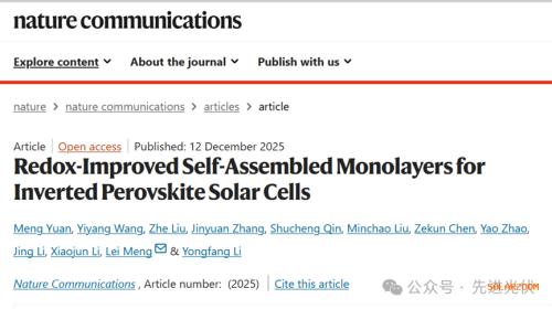 Yuan, M., Wang, Y., Liu, Z. et al. Redox-Improved Self-Assembled Monolayers for Inverted Perovskite Solar Cells. Nat Commun (2025).