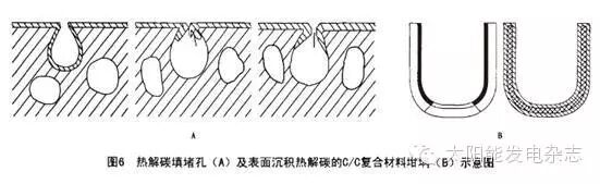 portant; box-sizing: border-box !important; word-wrap: break-word !important;">图6热解碳填堵孔(A)及表面沉积热解碳的C/C复合材料坩埚(B)的示意图