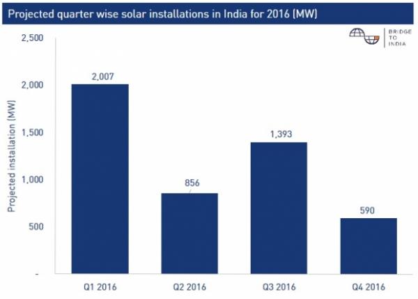 根据咨询公司Bridge to India最新的市场报告,印度2016年将安装4.8GW公共事业规模太阳能装机容量,较2015年2GW增长140%。