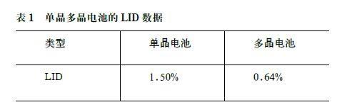 由表1的实验结果,不难发现单晶电池LID较多晶电池严重,这主要是因为单晶原料和多晶原料的生长环境不同所导致。常规单晶生长使用石英坩埚,石英坩埚在高温时与硅溶液反应,生成SiO2,这样使硅棒中氧的含量有一定幅度提升,从而增加了硼-氧对的数量,硼氧对在经过光照处理时会形成少子寿命低的BO5,影响电池片的输出功率,最终增加了单晶硅电池的LID光衰值。