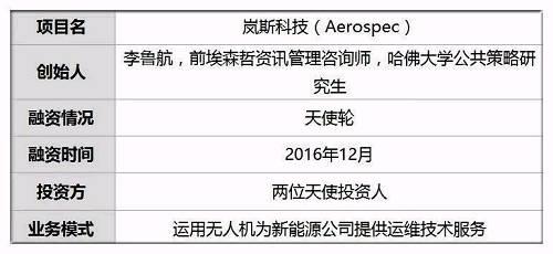 去年12月,岚斯科技完成天使轮融资。现阶段,项目已与金风科技(002202,股吧)、美国通用电气、ENEL等公司达成合作,并正在进行新一轮融资。