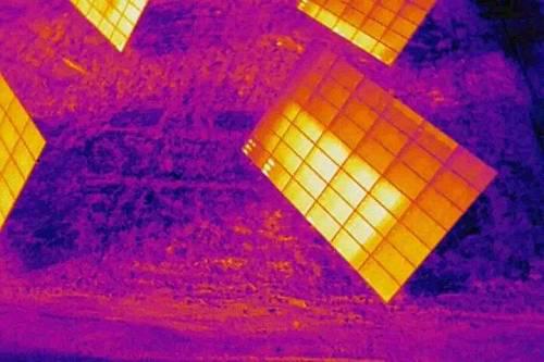 同时,李鲁航为采购的某品牌多旋翼无人机搭载了两块镜头:一颗8X光学RGB镜头及一颗热成像镜头。飞行器上升到光伏板上空约40米的位置后进入巡检状态,通过热成像传感器的温差图像判断光伏板是否正常运行(故障光伏板颜色较暗),并用RGB镜头绘制2D地图。